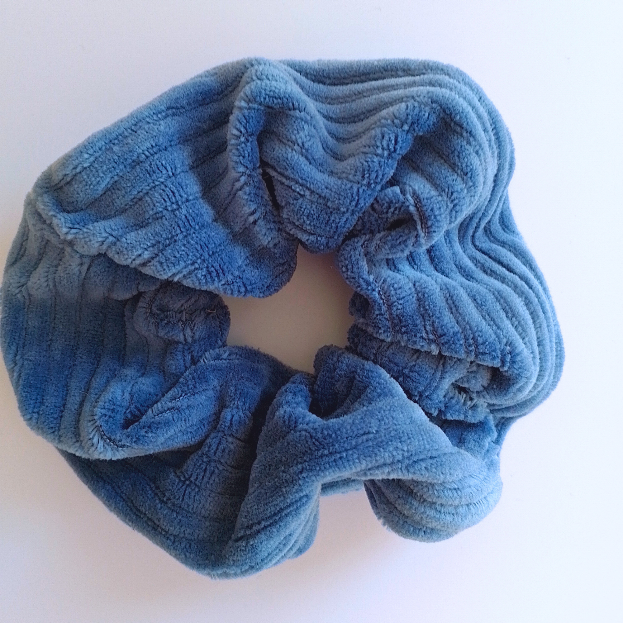 Zachte scrunchies met een ribbed-look. Gemaakt van reststoffen.
